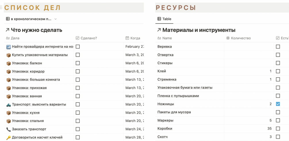 - Как переехать без стресса – здесь собраны все ресурсы, необходимые для организации переезда (календарь, список дел, описание коробок, документы и прочее)